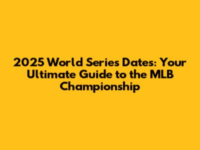 2025 World Series Dates: What You Need To Know