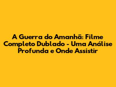 Onde Assistir "A Guerra do Amanhã: Filme Completo Dublado" - Opções e Dicas