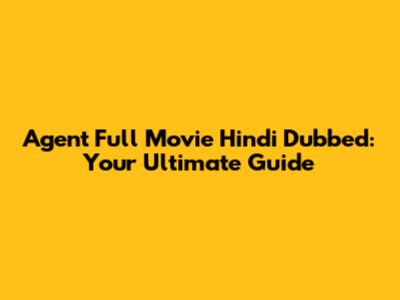 Agent Full Movie Hindi Dubbed: Watch Online