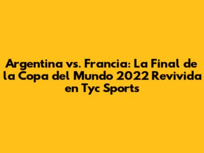 Argentina Vs. Francia: Final Épica De 2022 En Tyc Sports