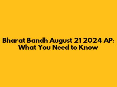 Hey guys! Let's dive into the burning question on everyone's mind: Is there a Bharat Bandh happening on August 21, 2024, specifically in Andhra Pradesh (AP)? This is a pretty big deal, as a Bharat Bandh, or a nationwide strike, can really shake things up, affecting everything from daily commutes to businesses. It's crucial to stay informed, especially if you're in AP, to understand the potential implications. We'll break down what a Bharat Bandh entails, why it might be called, and what the current situation is regarding August 21st. Understanding these events helps us navigate our day-to-day lives more smoothly and be prepared for any disruptions.