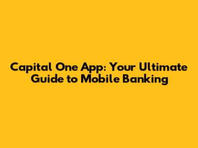 Capital One App: Your Ultimate Guide To Mobile Banking