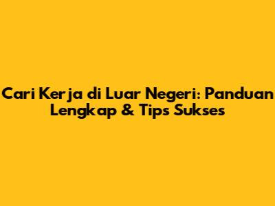 Cari Kerja Di Luar Negeri: Panduan Lengkap & Tips Sukses