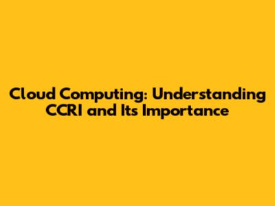 Cloud Computing: Understanding CCRI And Its Importance