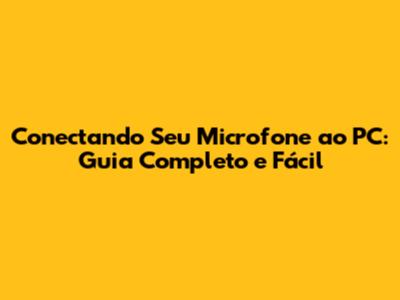 Conectando Seu Microfone Ao PC: Guia Completo E Fácil