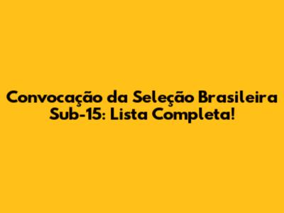 Hey pessoal! Tudo bem com vocês? Hoje vamos falar sobre um assunto super importante para o futuro do futebol brasileiro: a convocação da Seleção Brasileira Sub-15! É nessa categoria que os craques do futuro começam a trilhar seus caminhos rumo ao sucesso. Fiquem ligados para saber tudo sobre os jovens talentos que vestirão a amarelinha!