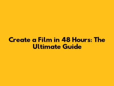 Create A Film In 48 Hours: The Ultimate Guide