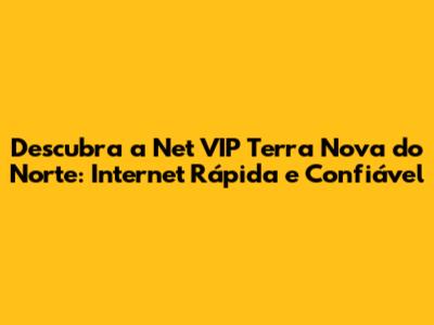 Descubra A Net VIP Terra Nova Do Norte: Internet Rápida E Confiável