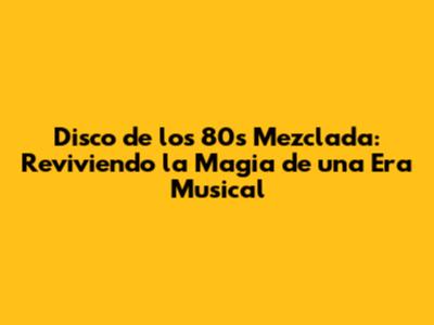 Disco De Los 80s Mezclada: Un Viaje Musical Inolvidable