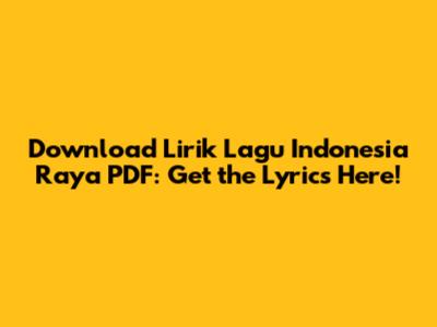 Hey guys, ever found yourself humming along to Indonesia Raya, the national anthem, but stumbling over a few words? Or maybe you're prepping for a school project, a performance, or just want to have the lyrics handy? Well, you've come to the right place! In this article, we're diving into everything you need to know about downloading the lyrics of Indonesia Raya in PDF format. Let’s get started!