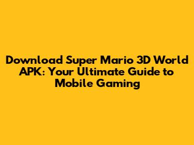 Step-by-Step Guide: How to Download and Install the Super Mario 3D World APK