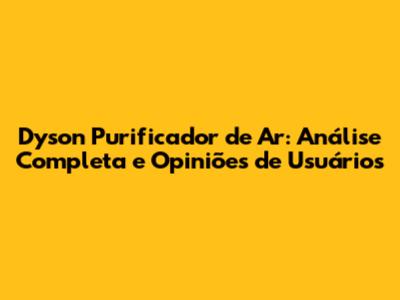 Dyson Purificador De Ar: Análise Completa E Opiniões De Usuários