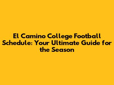 El Camino College Football Schedule: Your Ultimate Guide for the Season