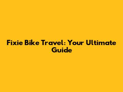 Fixie Bike Travel: Your Ultimate Guide