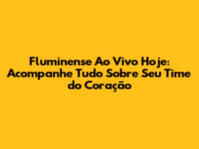 Acompanhar o Fluminense ao vivo hoje é uma experiência única e emocionante. Seja qual for o resultado, o amor pelo clube permanece inabalável. Continue ligado nas nossas atualizações para não perder nada sobre o seu time do coração. Saiba onde assistir, fique por dentro dos horários e mergulhe nas notícias para viver a paixão tricolor em sua plenitude. O Fluminense é mais que um clube; é uma família, um sentimento que nos une. Vamos juntos, galera tricolor, apoiar o nosso time rumo a mais vitórias! Saudações Tricolores!