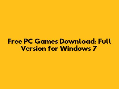 Free PC Games Download: Full Version For Windows 7