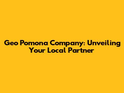 Geo Pomona Company: Unveiling Your Local Partner