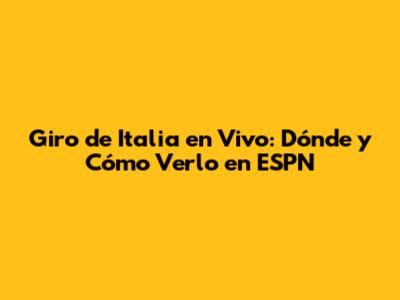 ESPN: Tu Ventana al Giro de Italia
