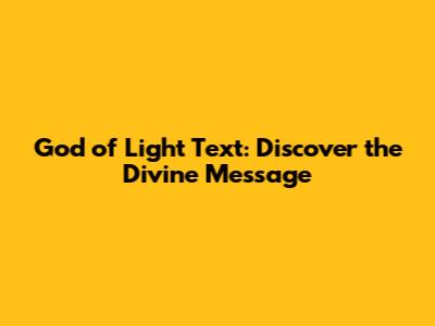 God Of Light Text: Discover The Divine Message