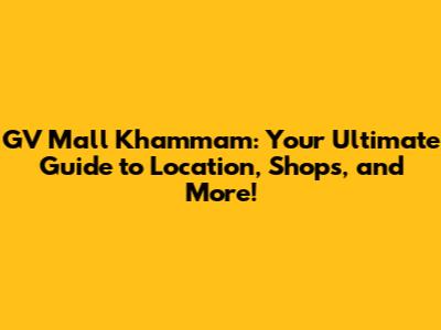 GV Mall Khammam: Your Ultimate Guide To Location, Shops, And More!