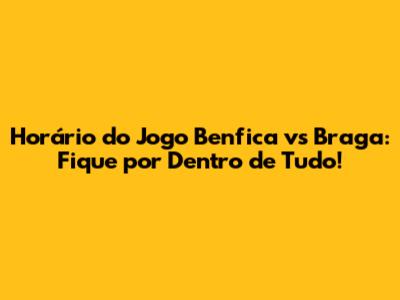 Horário Do Jogo Benfica Vs Braga