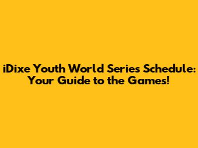 IDixe Youth World Series Schedule: Your Guide To The Games!