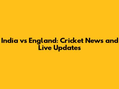 India Vs England: Cricket News And Live Updates
