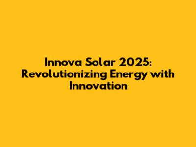 Innova Solar 2025: Revolutionizing Energy With Innovation