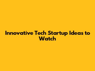 Innovative Tech Startup Ideas To Watch
