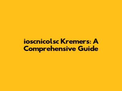 Ioscnicolsc Kremers: A Comprehensive Guide