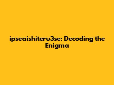 Ipseaishiteru3se: Decoding The Enigma