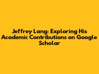 Jeffrey Lang: Exploring His Work On Google Scholar
