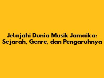 Jelajahi Dunia Musik Jamaika: Sejarah, Genre, Dan Pengaruhnya