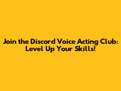 Join The Discord Voice Acting Club: Level Up Your Skills!