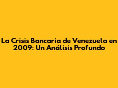 La Crisis Bancaria De Venezuela En 2009: Un Análisis Profundo