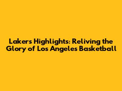 Lakers Highlights: Epic NBA Moments You Can't Miss