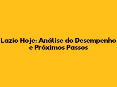 Lazio Hoje: Análise Do Desempenho E Próximos Passos