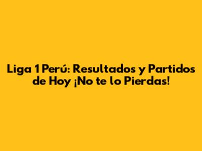 Liga 1 Perú: Resultados Y Partidos De Hoy ¡No Te Lo Pierdas!