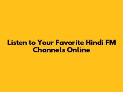 Listen To Hindi FM Channels Online