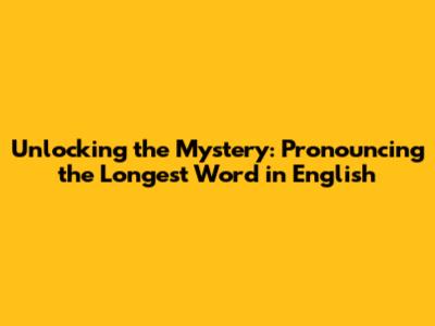 Longest Word In English: Pronunciation & Meaning