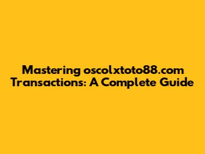 Mastering Oscolxtoto88.com Transactions: A Complete Guide