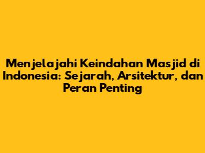 Masjid adalah jantung kehidupan umat Islam di Indonesia. Melalui sejarah masjid, arsitektur masjid, fungsi masjid, dan peran masjid, kita dapat memahami betapa pentingnya masjid dalam membentuk identitas dan peradaban bangsa. Mari kita lestarikan dan kembangkan masjid sebagai tempat ibadah, pusat pendidikan, pusat sosial, dan pusat peradaban Islam.