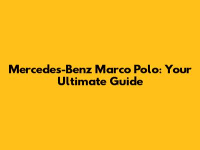 Mercedes-Benz Marco Polo: Your Ultimate Guide