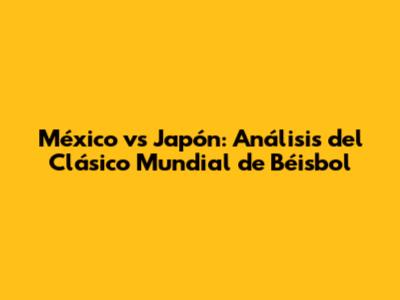 México Vs Japón: Análisis Del Clásico Mundial De Béisbol