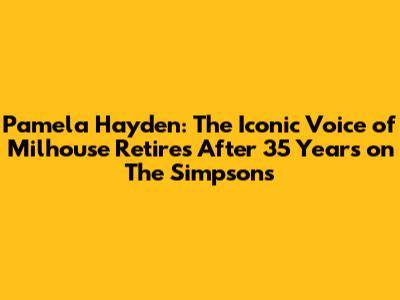 In conclusion, Pamela Hayden's retirement marks the end of an era for The Simpsons and the world of animation. Her 35-year run as the voice of Milhouse Van Houten has left an indelible mark on the show and its fans. Hayden's talent, dedication, and versatility have made her one of the most iconic and respected voice actors in the industry. Her portrayal of Milhouse has brought laughter, tears, and countless memorable moments to viewers of all ages. As we celebrate Pamela Hayden's remarkable career, we recognize the profound impact she has had on The Simpsons and the world of animation. Her legacy will continue to inspire and entertain generations of viewers for years to come. Thank you, Pamela Hayden, for giving us the voice of Milhouse Van Houten and for enriching our lives with your talent and humor. Your contributions to The Simpsons will never be forgotten. Here's to a well-deserved retirement and a lifetime of happiness!