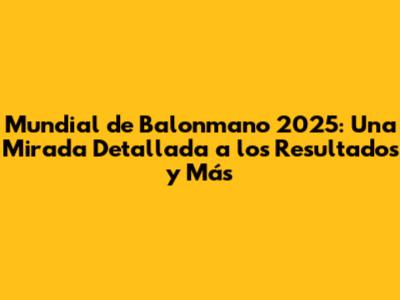 ¡Hola a todos los fanáticos del balonmano! Prepárense porque el Mundial de Balonmano 2025 está a la vuelta de la esquina. Este torneo promete ser épico, lleno de acción, emoción y, por supuesto, resultados sorprendentes. En este artÃculo, vamos a sumergirnos en todo lo que necesitas saber sobre este evento deportivo: desde las sedes y los equipos participantes hasta las expectativas y las predicciones. ¡Asà que, agarren sus palomitas y acompáñenme en este recorrido por el mundo del balonmano! El Mundial de Balonmano es mucho más que un simple campeonato; es una celebración del deporte, una vitrina de talento y una oportunidad para que los paÃses compitan por el tÃtulo más prestigioso. En esta edición, como en cada una, se espera que los equipos nacionales den lo mejor de sÃ, demostrando habilidades, estrategias y, sobre todo, pasión por el juego. El balonmano, con su ritmo frenético y su juego estratégico, ha ganado una enorme popularidad en todo el mundo. El Mundial de Balonmano 2025 atraerá a millones de espectadores, tanto en las canchas como frente a las pantallas. Los jugadores se entrenan durante años para tener la oportunidad de representar a su paÃs en este evento, y cada partido es una batalla por la gloria. En este artÃculo, desglosaremos todo lo que necesitas saber para estar al tanto de cada jugada, cada gol y cada resultado del Mundial de Balonmano 2025. ¡Prepárense para una experiencia inolvidable! El torneo se perfila para ser un evento emocionante, lleno de sorpresas y momentos memorables. Los equipos competirán con el objetivo de llegar a la final y levantar el codiciado trofeo. El Mundial de Balonmano 2025 promete ser un evento que unirá a aficionados de todo el mundo en torno a la pasión por este deporte. Estaremos actualizando constantemente la información sobre las sedes, los equipos participantes y los resultados de cada partido. ¡Asà que, manténganse conectados para no perderse nada! Los equipos se preparan con intensidad, afinando sus estrategias y buscando la excelencia en cada entrenamiento. Los entrenadores trabajan incansablemente para sacar lo mejor de sus jugadores, y cada partido es una prueba de habilidad y determinación. La expectación es alta, y los aficionados esperan ansiosamente el inicio del torneo. El Mundial de Balonmano 2025 es una oportunidad para celebrar la deportividad y la pasión por este deporte. ¡Prepárense para disfrutar de un espectáculo inolvidable! En resumen, el Mundial de Balonmano 2025 es un evento que ningún aficionado al deporte querrá perderse. Estaremos aquà para mantenerlos informados sobre todo lo que suceda en el torneo. ¡No se pierdan ni un solo detalle! El balonmano es un deporte que combina fuerza, agilidad y estrategia, y el Mundial de Balonmano es el escenario perfecto para ver a los mejores equipos del mundo en acción. Estaremos cubriendo cada partido, cada jugada y cada resultado para que puedan disfrutar de este emocionante evento. ¡Asà que, acompáñenos en esta aventura deportiva! El Mundial de Balonmano 2025 será un evento que quedará grabado en la memoria de los aficionados. Estaremos presentes para brindarles toda la información y mantenerlos al dÃa con cada momento del torneo. ¡No se pierdan la oportunidad de ser parte de esta gran celebración del balonmano!