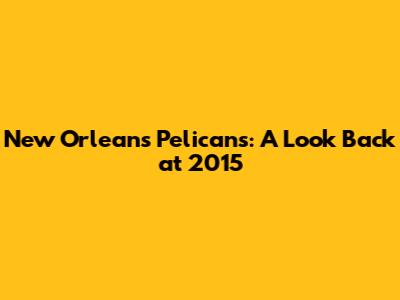 New Orleans Pelicans: A Look Back At 2015