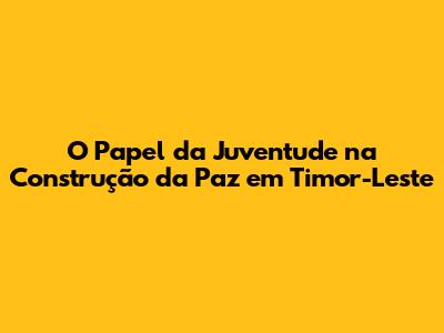 O Papel Da Juventude Na Construção Da Paz Em Timor-Leste