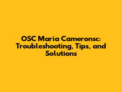 OSC Maria Cameronsc: Troubleshooting, Tips, And Solutions