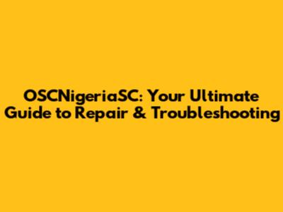 OSCNigeriaSC: Your Guide To Repair & Troubleshooting